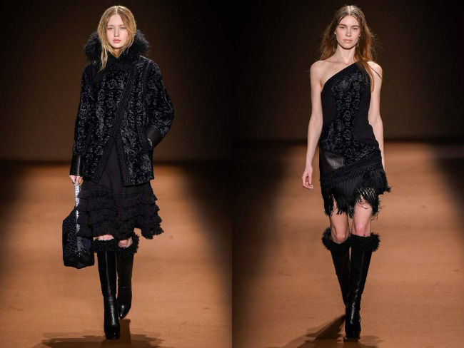 Andrew Gn Designed the Dresses are amazing collections, hand-knotted fringe trim and Mongolian fur around the collar and the jacket with its flat woven panels meant to mimic astrakhan. That the show highlighted for decolletage that glimmered with floral beading,silk sheaths with cocoon coats, hand-knit cashmere sweaters and velvet-patched mohair coats.