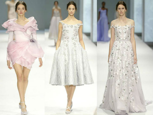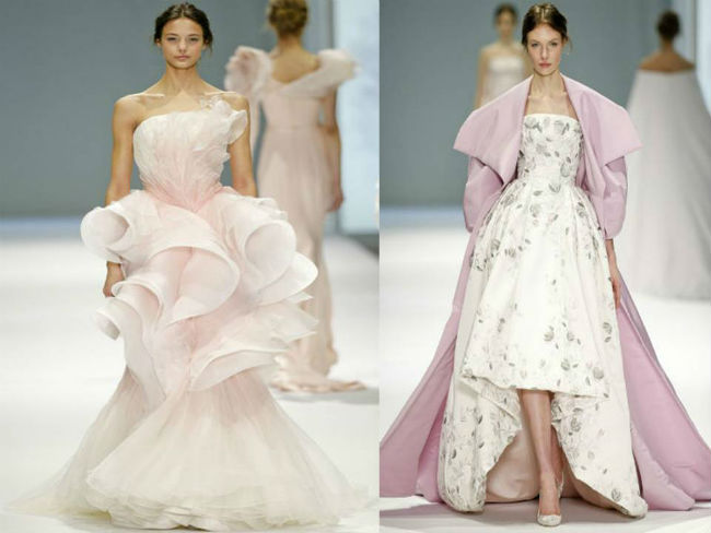 Zuhair Murad’s designs pleating in waves around the waist, Watteau backs mimicking waterfalls, tulle at the shoulder, rippling embroidery and plunging necklines and also boatnecks proved to his talent. The clapping is the best collection of fairy-tale wedding gown. Tamara Ralph created a cocktail dresses sprouted multiple peplums, arch Watteau backs or whorled volumes around the hips.